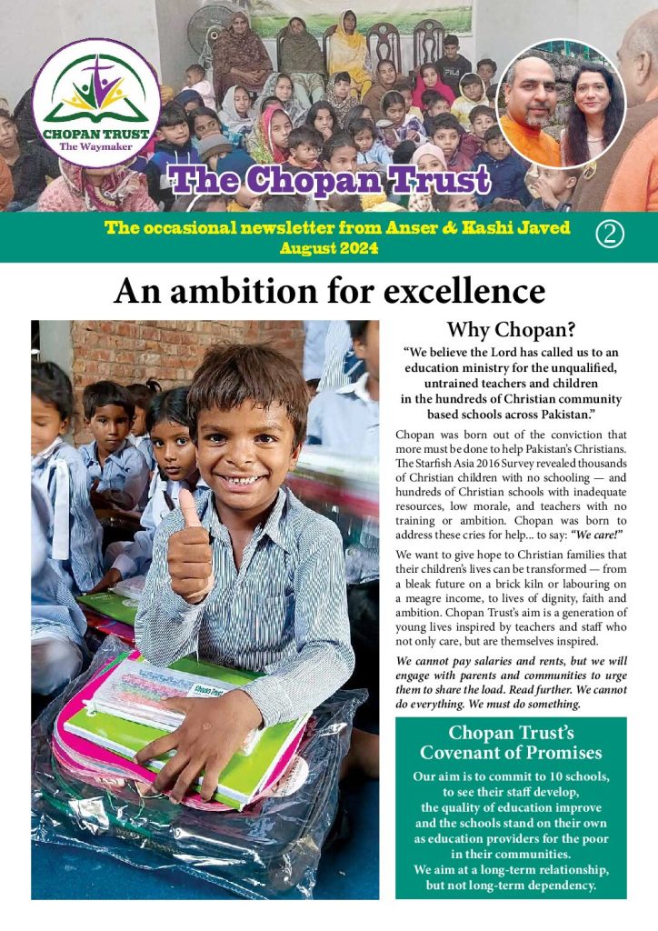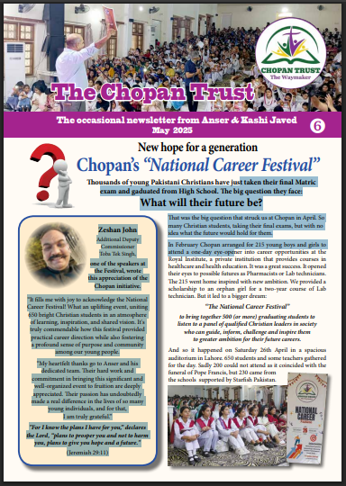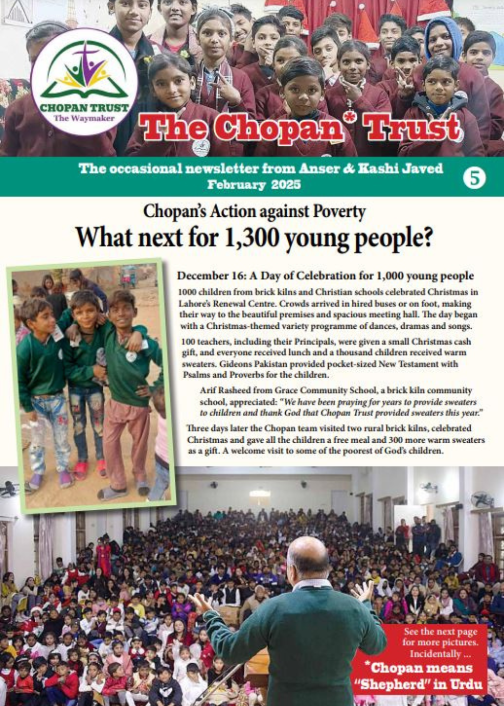 Newsletter We Dare to Dream - An Introduction to Ambitions of Chopan Trust NewsLetterMay - 2025 NewsLetter Febraury - 2025 NewsLetterDecember - 2024 Bringing HopeReport Chopan-appealApril-2024 NewsLetterSeptember - 2024 NewsLetterAugust - 2024 NewsLetterMay - 2024 Want to make a difference? Help us raise money for our humanitarian causes Donate
