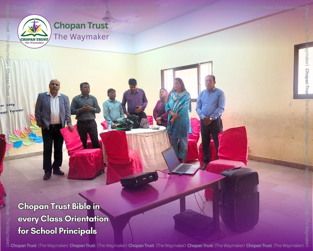 Across Pakistan, a quiet but powerful movement is beginning to take shape. Through a series of orientation sessions in Lahore, Gujranwala, Khanewal (Multan region), and Karachi, Chopan Trust has started introducing school leaders to a vision that is both simple and deeply needed: bringing the Bible back into every classroom.